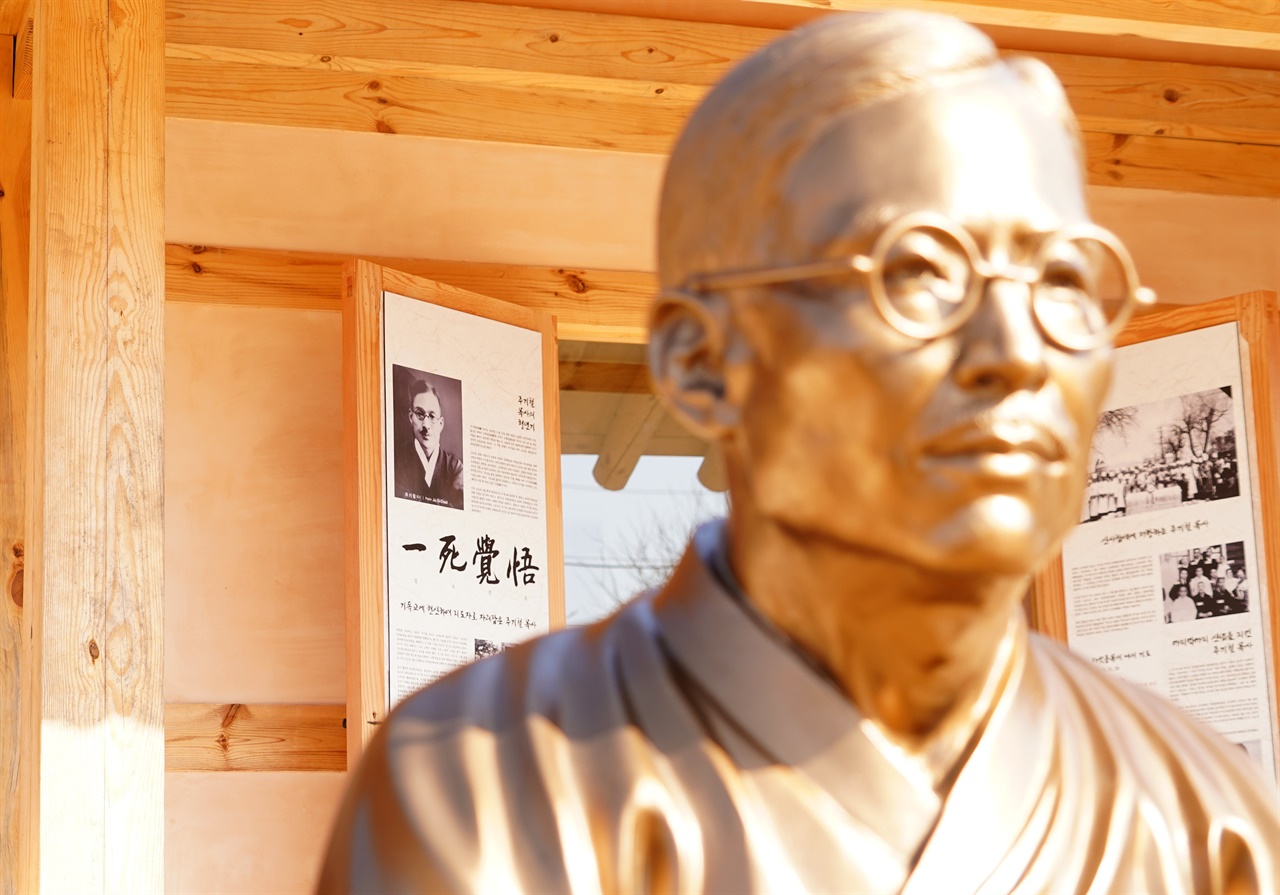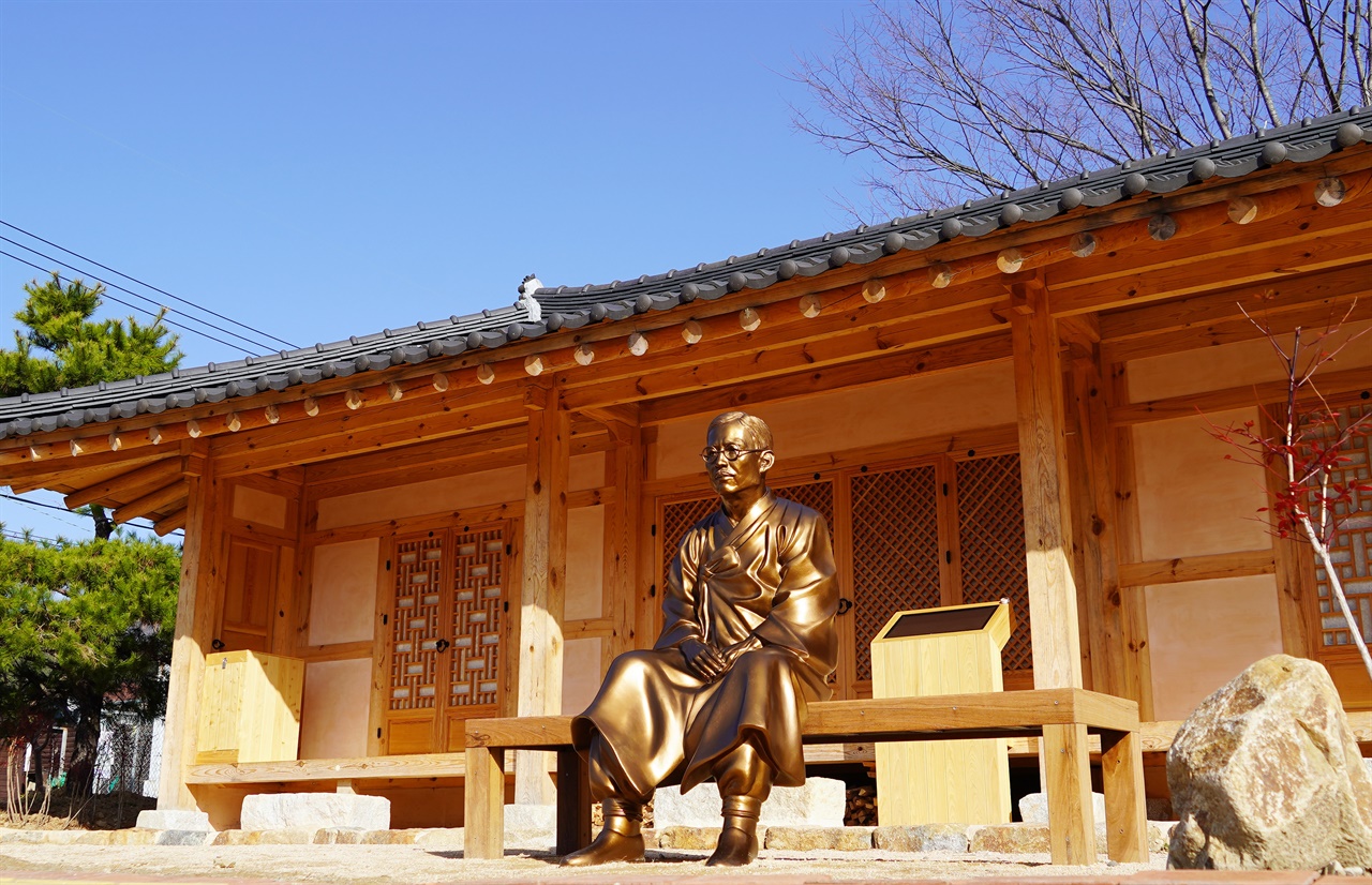 지난 2월 14일 항일독립운동가 주기철 목사(1897~1944)의 일생을 한눈에 볼 수 있는 생가전시관이 개관했다. 삼일절을 이틀 앞둔 28일, 주기철 목사의 동상이 따사로운 봄볕을 쬐듯 생가전시관 앞에 앉아 있다.