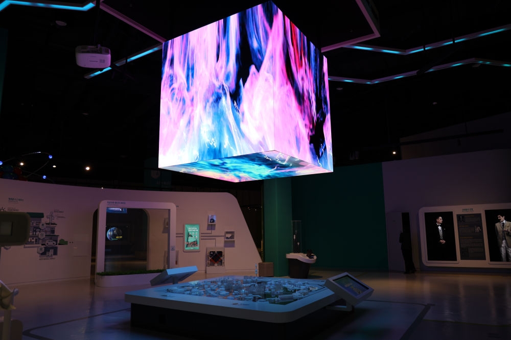 먼저, 3관의 상징전시물 ‘심포닉 에너지’는 5면의 LED패널에 물, 불, 바람, 핵융합 등 다양한 에너지원을 그래픽영상으로 표현했다.