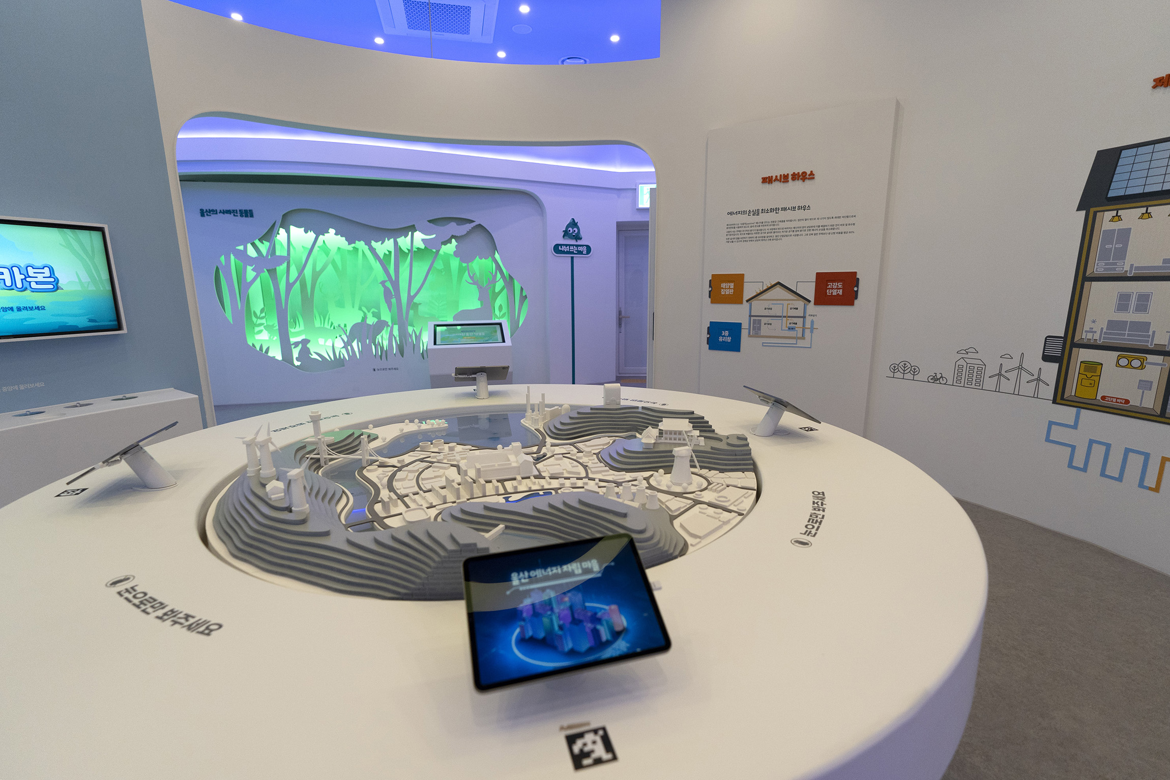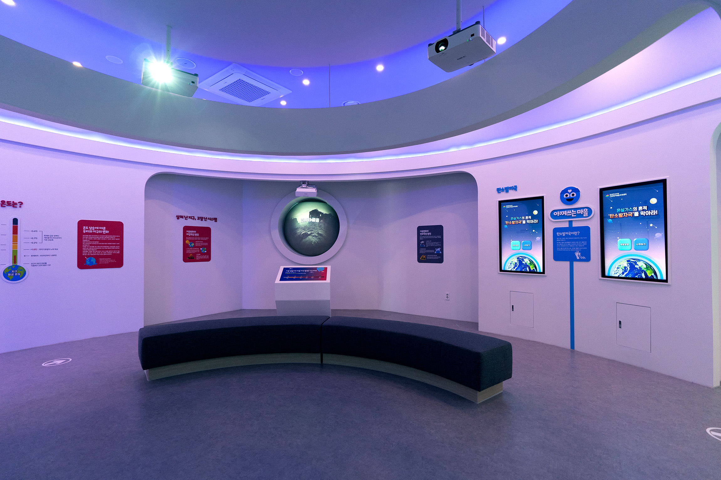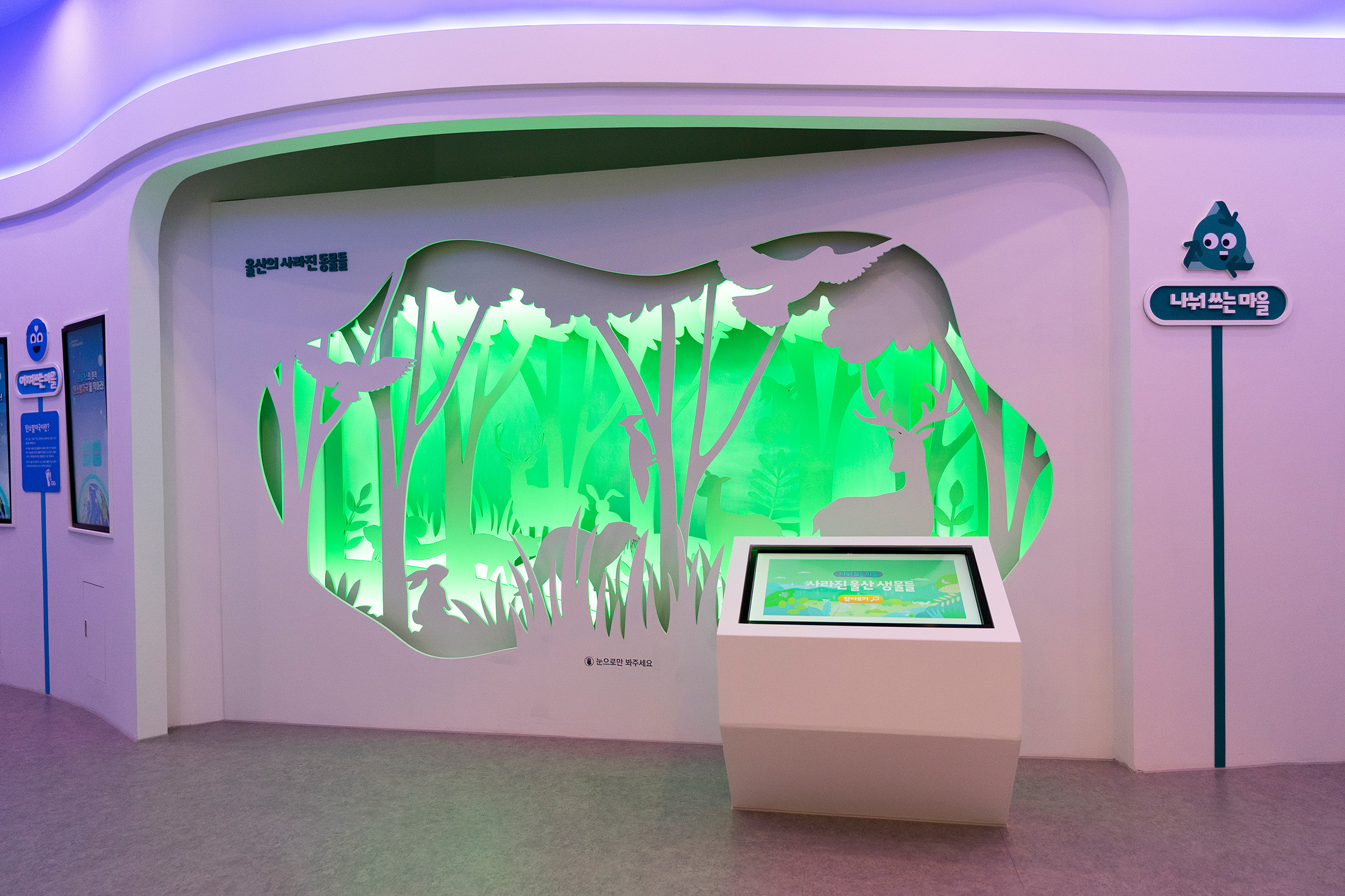 The Ulsan Climate Crisis Response Education Center is an environmental education space located near Ganjeolgot in Ulsan Metropolitan City, aiming to help visitors understand climate conditions caused by global warming and to build capacities for a sustainable future. In the exhibition hall, changes resulting from rising global average temperatures are explored through video content and hands-on exhibits, with carbon footprint presented as a core concept. Through touch-monitor-based carbon reduction experiences and exhibitions on endangered animals, the impacts of the climate crisis are conveyed in an intuitive way. In addition to the exhibition hall, the center includes various learning spaces such as escape room–style experiences and an environmental library, while reservation-based programs such as natural dyeing, gardening, and eco-friendly cooking classes encourage environmental action.
