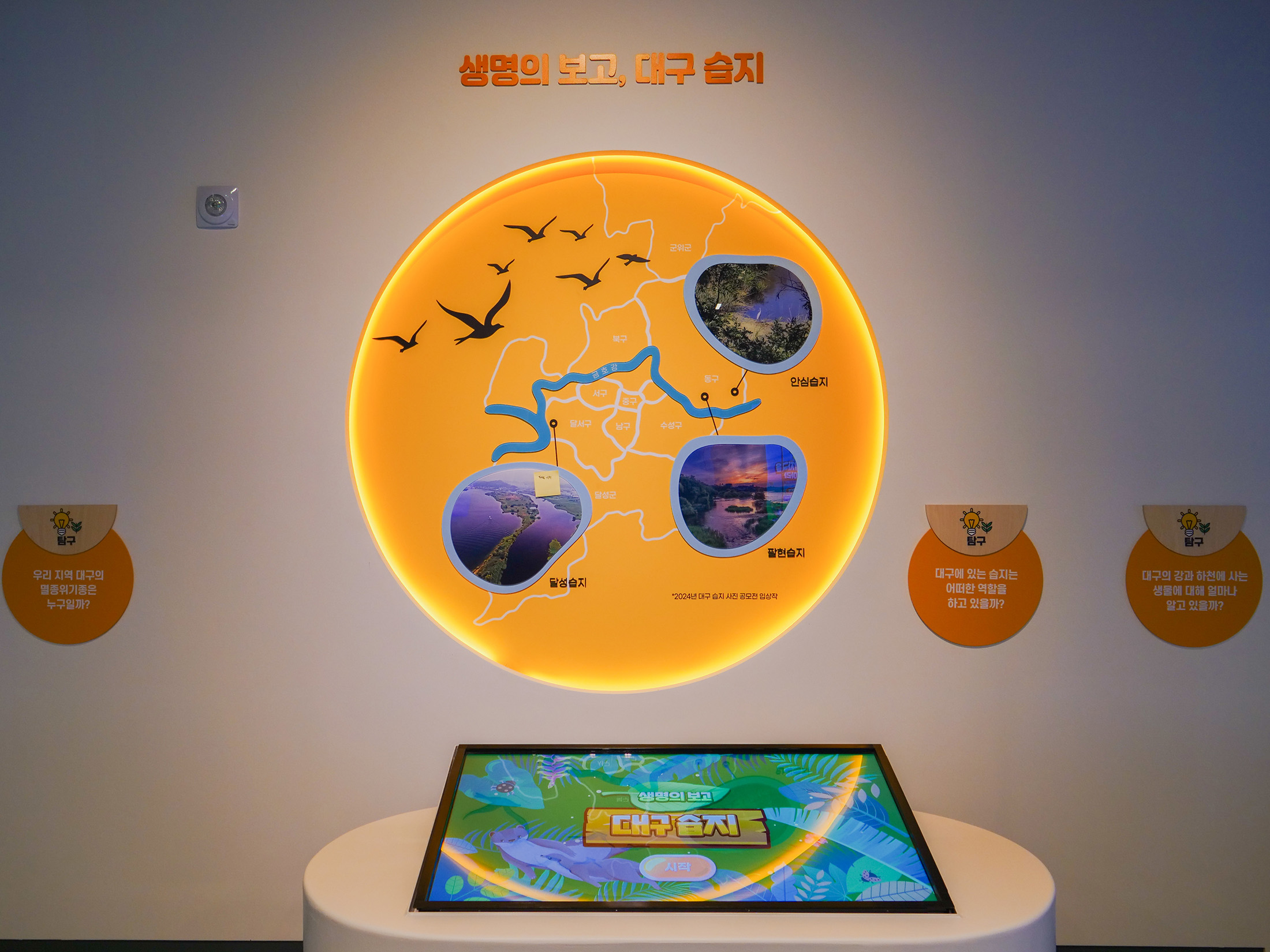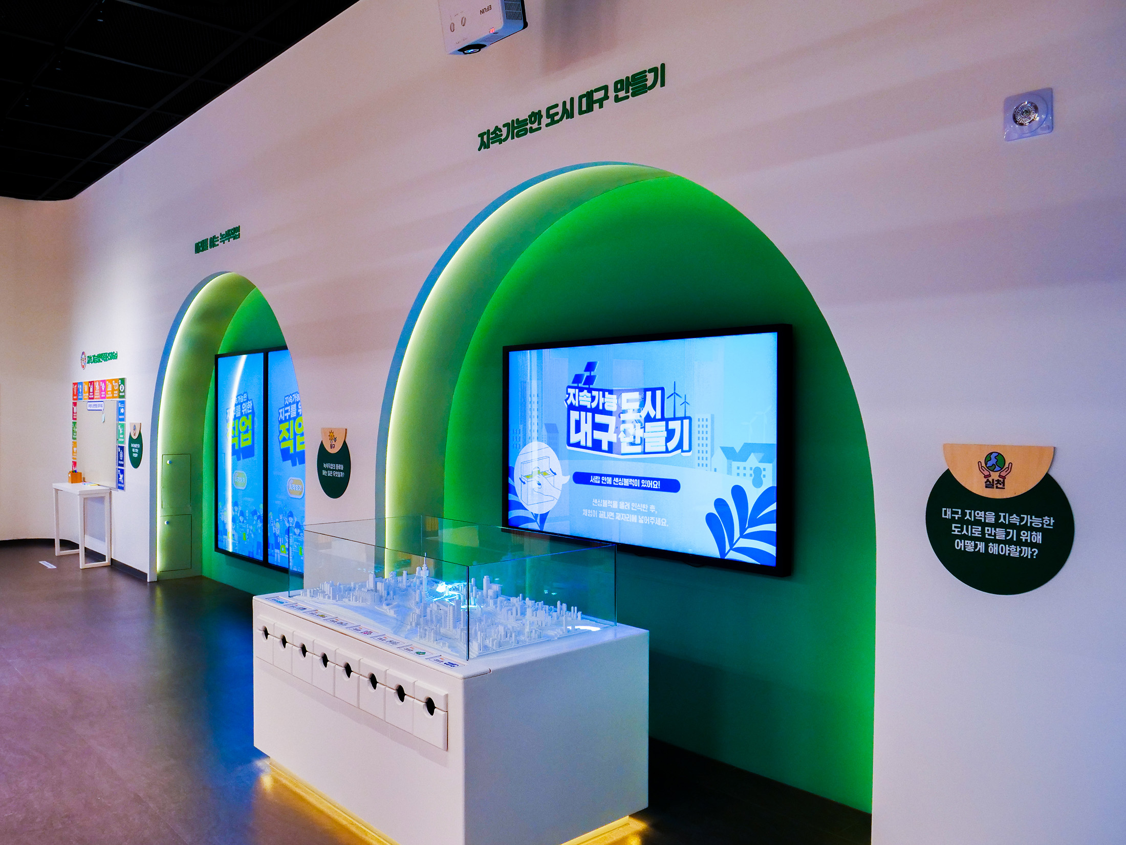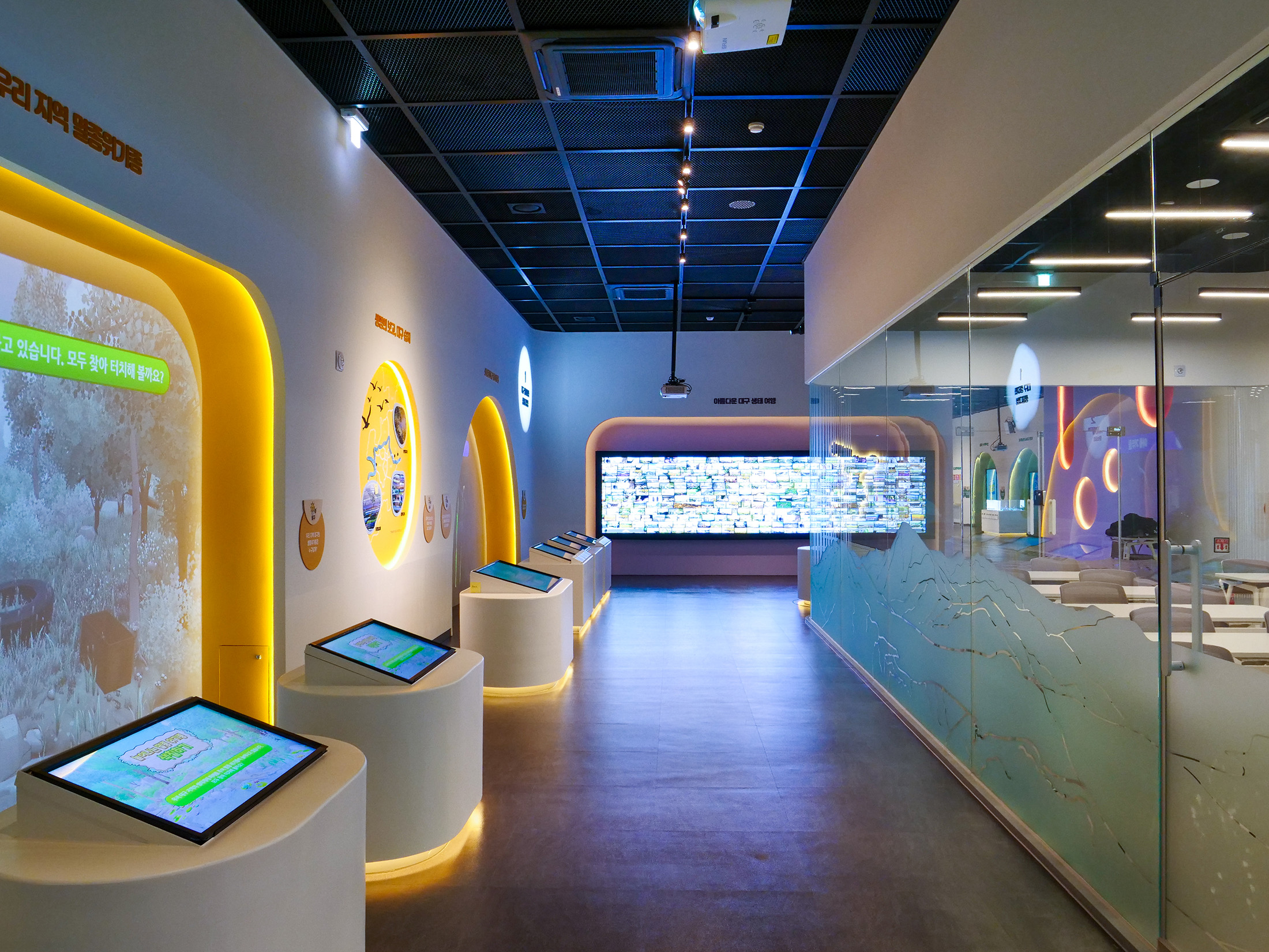 대구녹색학습원은 도심 속에서 자연과 환경을 주제로 한 다양한 체험을 통해 생태 감수성을 키울 수 있는 학습 공간이다. 대구 지역의 자연환경과 생태를 바탕으로, 관람객이 환경을 친근하게 느끼고 이해하도록 구성되어있다. 디지털 요소를 활용한 전시 연출로 어린이와 학생들이 부담 없이 참여할 수 있는 분위기를 만들었다. 전시는 전반적으로 생태계와 환경 변화에 대한 생각을 확장하는 방향으로 구성되어있다. 영상과 인터랙티브 콘텐츠를 통해 자연과 인간의 관계를 체험적으로 느낄 수 있도록 연출했다. 관람객이 놀이처럼 참여하며 환경의 소중함을 자연스럽게 인식하도록 하는 데 초점을 둔다.