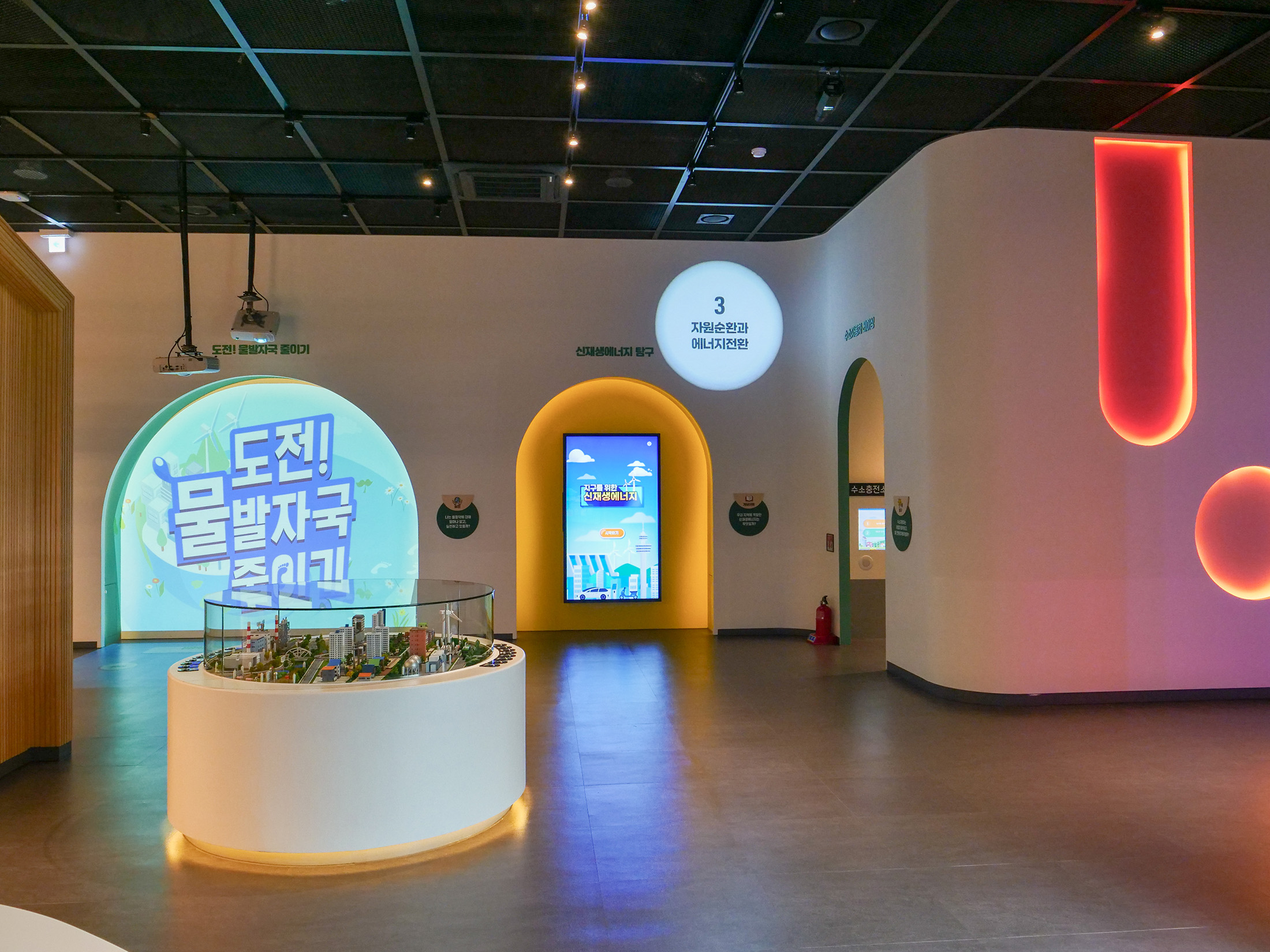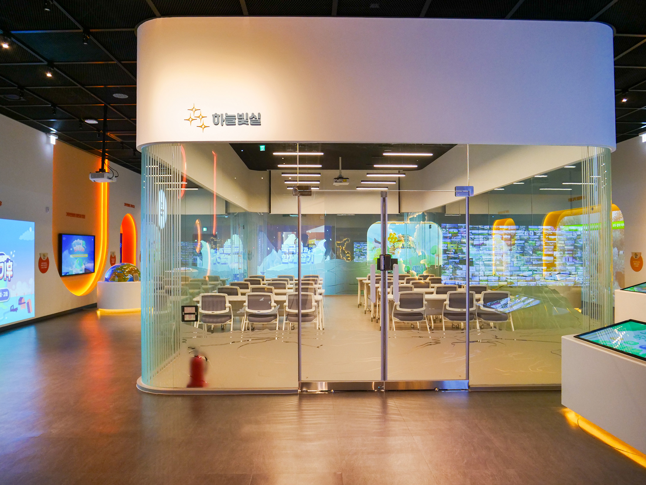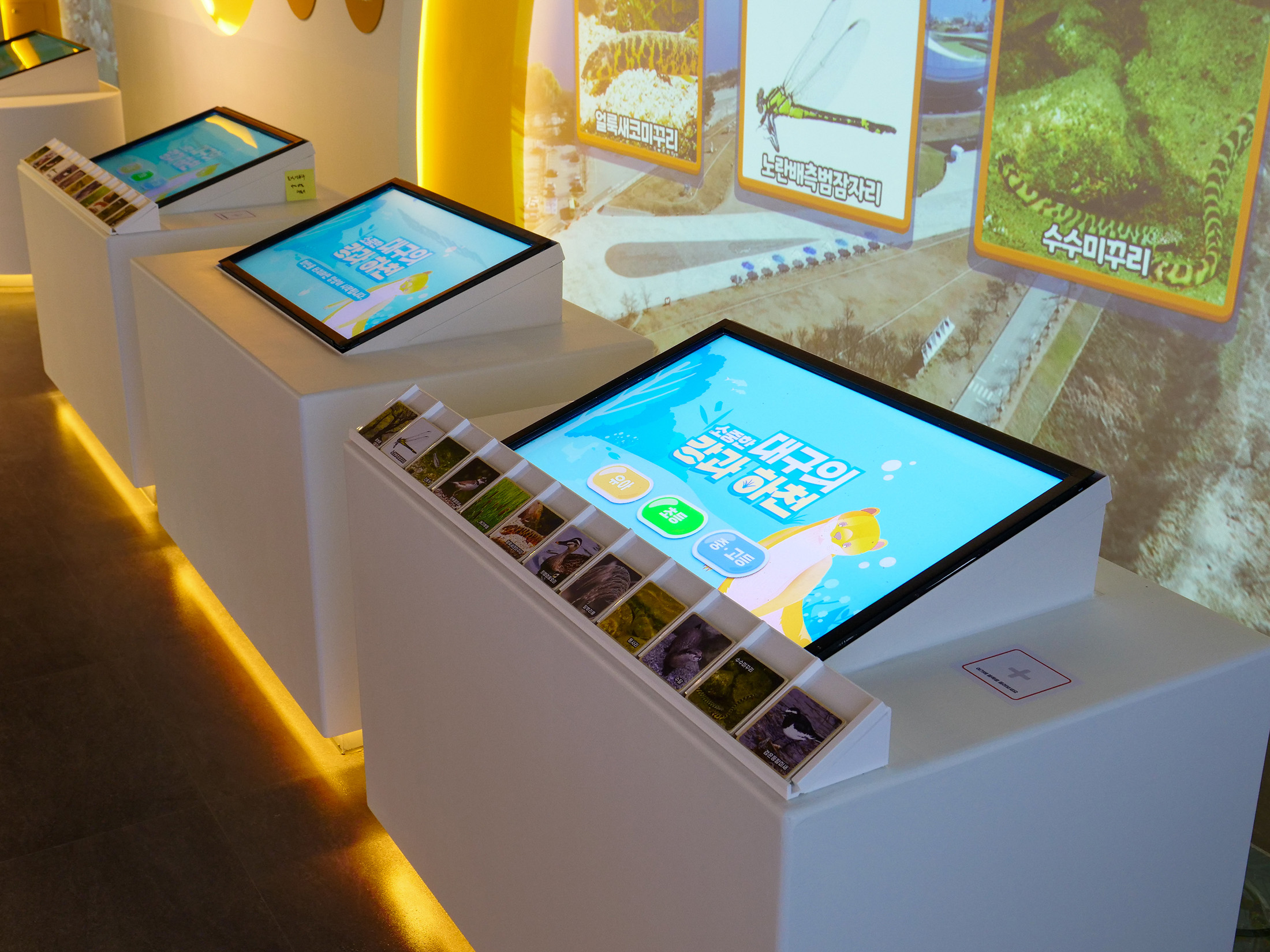 대구녹색학습원은 도심 속에서 자연과 환경을 주제로 한 다양한 체험을 통해 생태 감수성을 키울 수 있는 학습 공간이다. 대구 지역의 자연환경과 생태를 바탕으로, 관람객이 환경을 친근하게 느끼고 이해하도록 구성되어있다. 디지털 요소를 활용한 전시 연출로 어린이와 학생들이 부담 없이 참여할 수 있는 분위기를 만들었다. 전시는 전반적으로 생태계와 환경 변화에 대한 생각을 확장하는 방향으로 구성되어있다. 영상과 인터랙티브 콘텐츠를 통해 자연과 인간의 관계를 체험적으로 느낄 수 있도록 연출했다. 관람객이 놀이처럼 참여하며 환경의 소중함을 자연스럽게 인식하도록 하는 데 초점을 둔다.