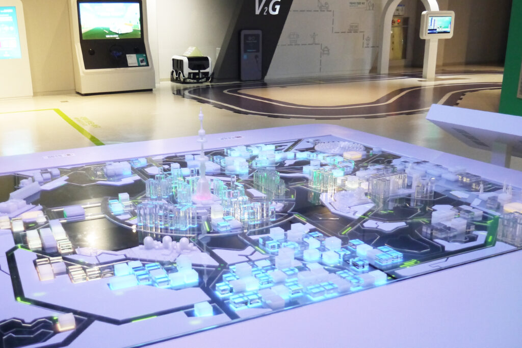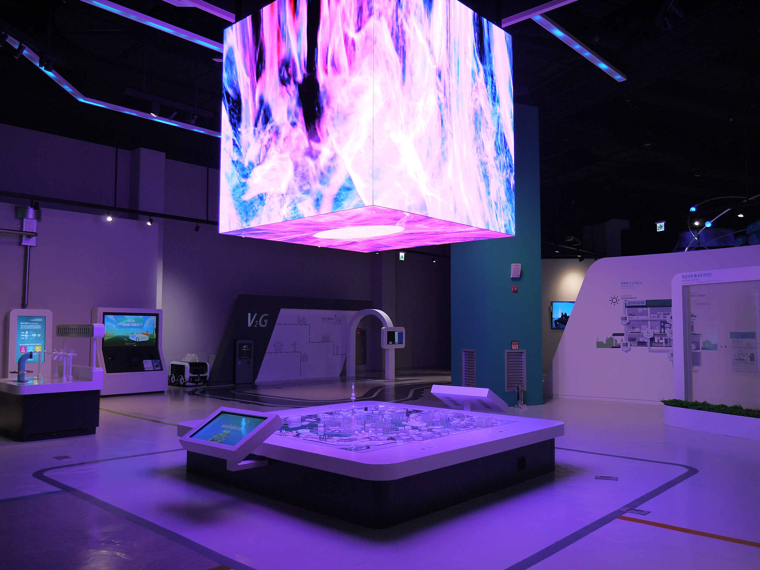 The Energy Hall is an exhibition gallery where visitors can explore how energy is generated and utilized through scientific principles and interactive experiences. It features a variety of hands-on exhibits, including photoelectric effect experiments and an energy road bike, while media art installations visualize the production processes of different energy sources. The gallery also introduces visions of carbon-free future cities through renewable energy and i-SMR technologies, and combines robotics with video and media art to present future energy technologies in an engaging and immersive way.